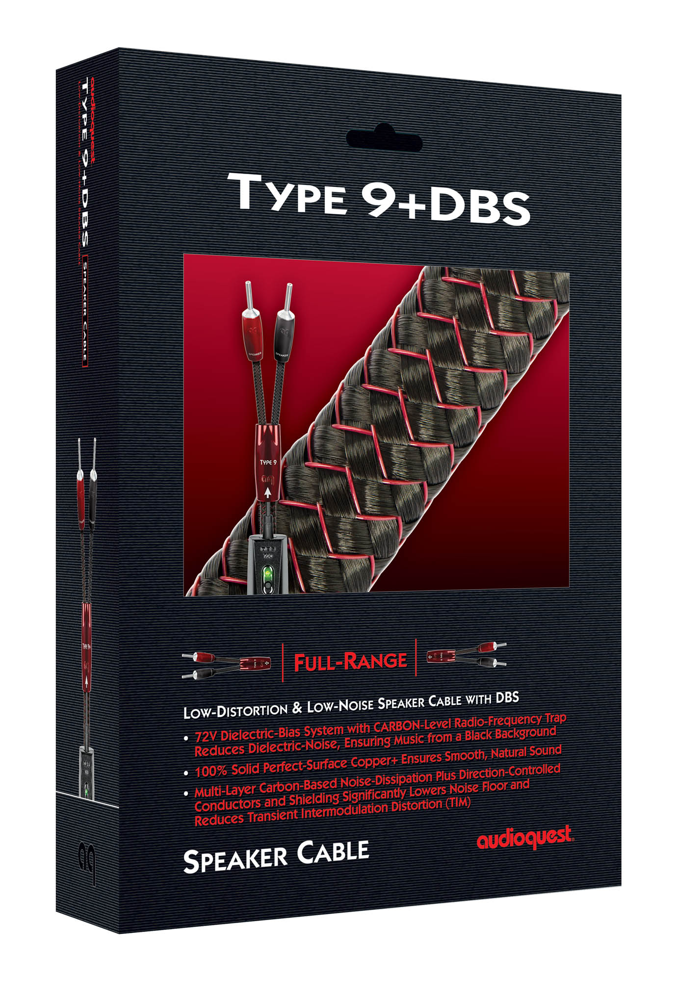 Das verzerrungs- und rauscharme Lautsprecherkabel des Typs 9+DBS ist im Wesentlichen ein Typ 4 mit besserem Metall, zusätzlichen Schichten und Techniken zur Rauschunterdrückung für eine effektivere Rauschkontrolle und dem patentierten Dialectric-Bias-System (DBS) von AQ.