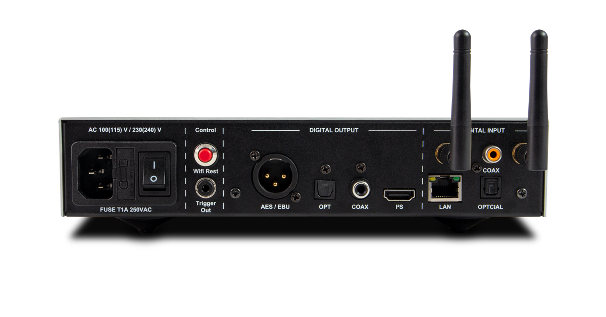 - Ein wählbarer Abtastratenwandler (SRC) wandelt die Streaming-Quelle oder digitale Eingangsmusik in eine höhere Abtastrate um (bis zu PCM 24-bit/768kHz und DSD256) mit extrem geringem Jitter und Verzerrung