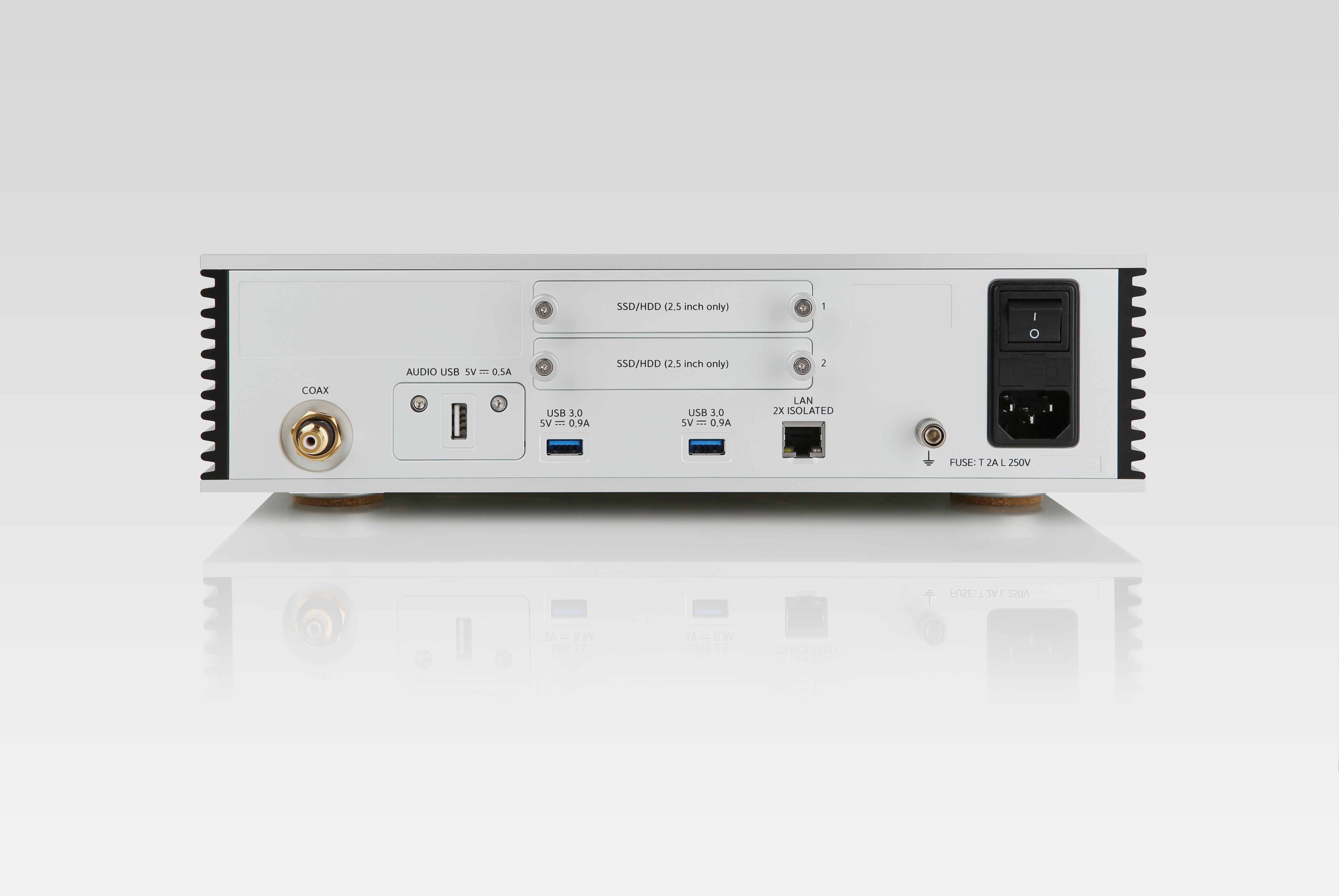 Außerdem sind alle Aurender-Innovationen enthalten, die Sie erwarten, einschließlich unserer neuesten Generation von USB- und koaxialen Digitalausgängen der Audioklasse 2.0, einem 2-fach isolierten Gigabit-Ethernet-Anschluss und einer unterbrechungsfreien Stromversorgung (USV) auf Superkondensatorbasis. Wir haben auch die Optionen für die interne Speicherkapazität der Musikbibliothek erweitert, indem wir zwei für den Benutzer zugängliche duale HDD/SSD-Einschübe bereitgestellt haben, die es dem Benutzer ermöglichen, den Festplattentyp und die Kapazität zu wählen, die seinen Bedürfnissen am besten entsprechen. Und wenn Sie zu 100 % streamen, müssen keine Laufwerke installiert werden.
