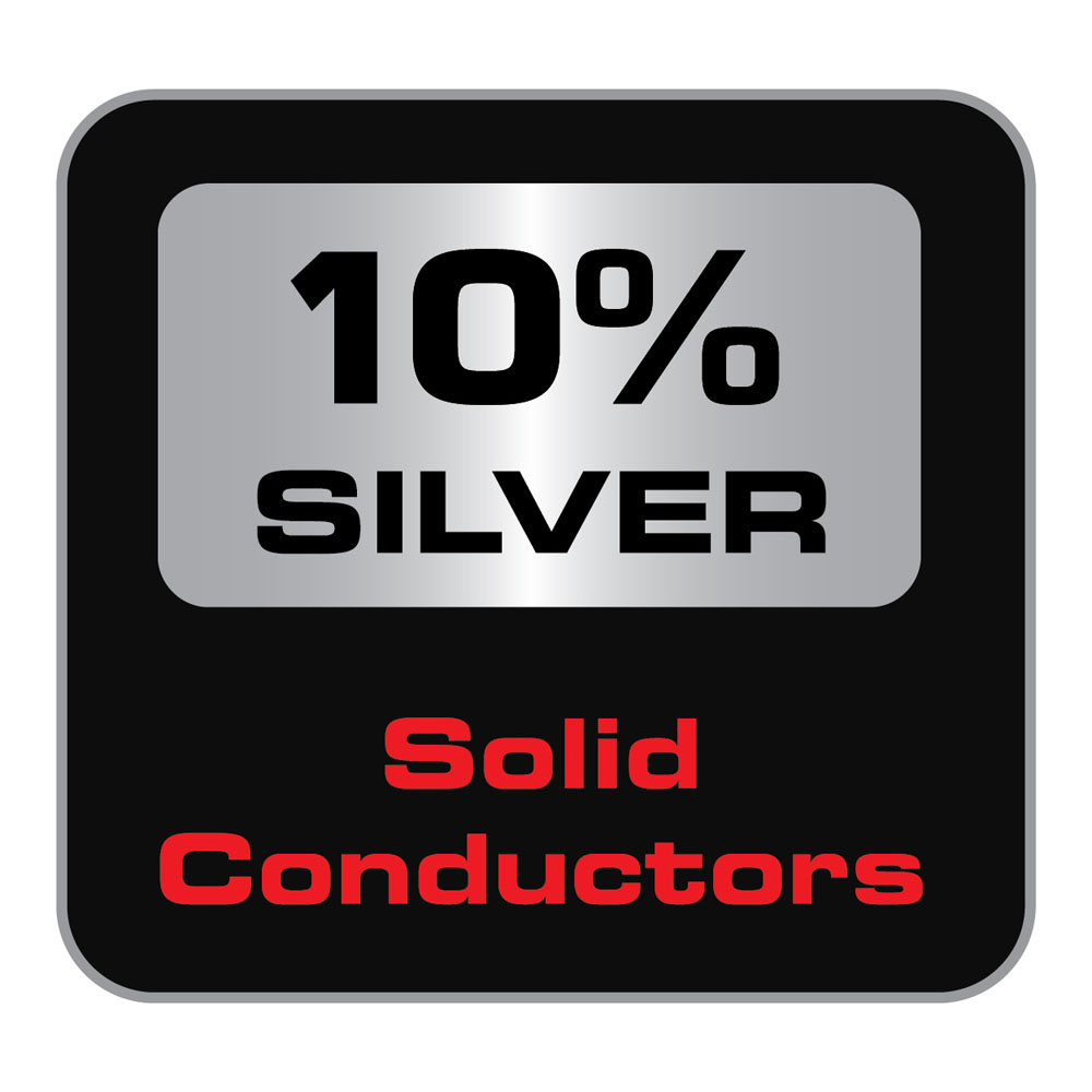 - Preisgünstiger, da nur der bei eARC verwendeten Leiter aus ultrareinem 10% Silber (Erdung aus 5% Silber) bestehen und die restlichen (unbenutzten) Leiter mit Kupfer Leitern mit 0,5% Silberüberzug gefertigt sind.